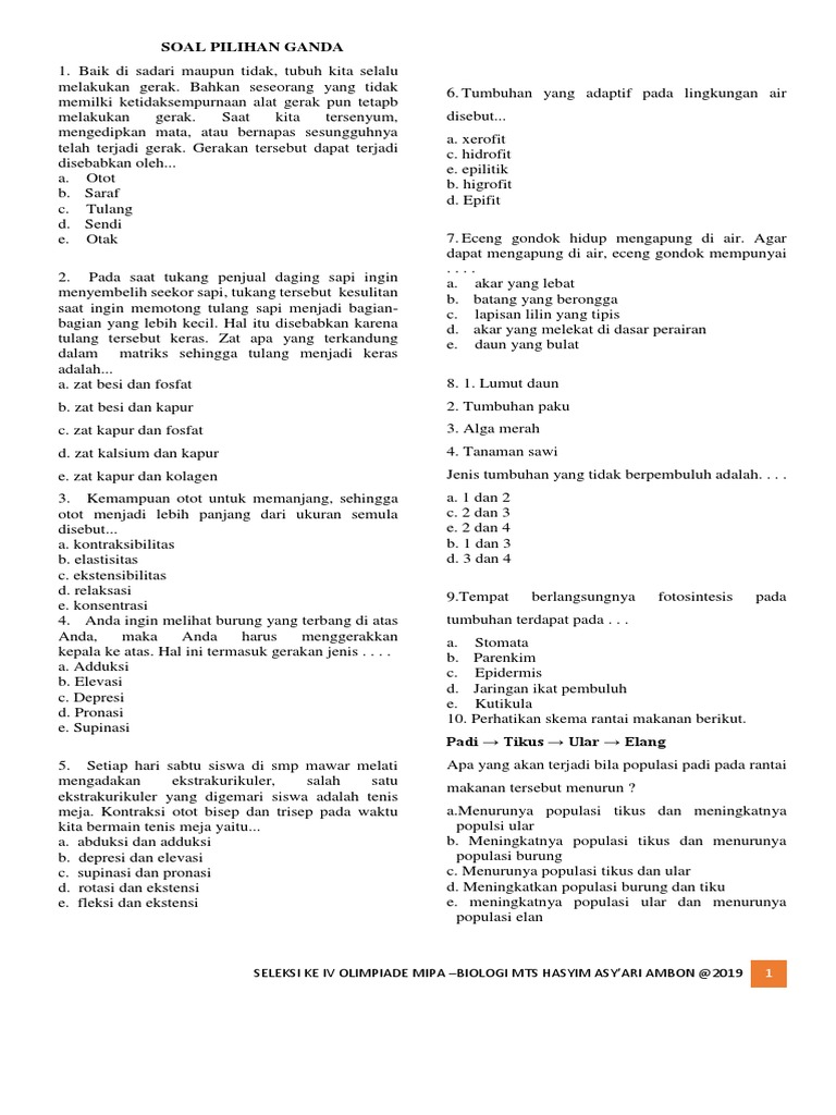 Feb 19 2013 Total Attempts. Soal Ujian Online Biologi Kelas 7 Diera yang serba modern saat sekarang ini telah banyak perkembangan zaman yang sangat canggih semua kegiatan banyak dilakukan cara berbasis online.
