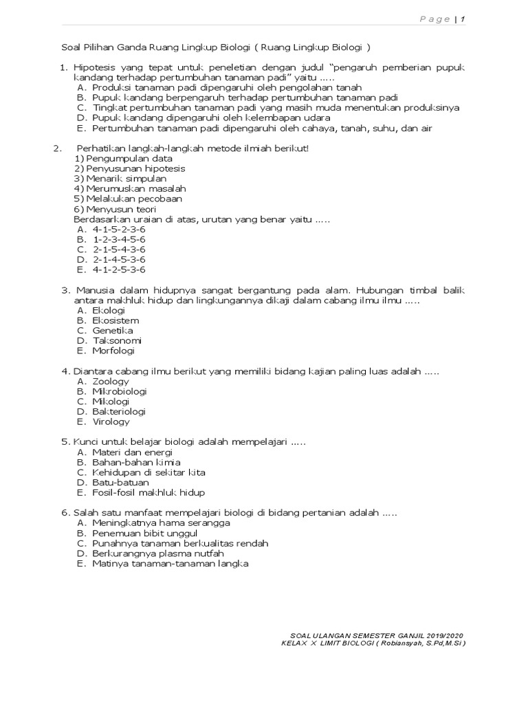 Materi Ilmu Pengetahuan Sosial Biologi adalah cabang ilmu yang dapat mendukung ilmu-ilmu dalam memecahkan masalah kehidupan yang ada sehingga terdapat faktor pendukung masalah kehidupan yang terdapat pada anak sekolah di SMP MTs kelas 7 semester 1 dan 2. Soal biologi smp kelas 7 Soal biologi smp kelas 7 semester 1 dan kunci jawaban Soal ciri-ciri makhluk hidup kelas 7 Soal essay fisika kelas 7. Berikut ini adalah soal-soal materi klasifikasi makhluk hidup untuk siswa SMP kelas VII.